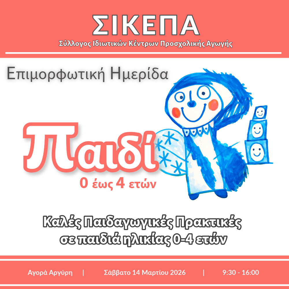 Το Σάββατο 14 Μαρτίου 2026, ο Σύλλογος Ιδιωτικών Κέντρων Προσχολικής Αγωγής Δυτικής Ελλάδας (Σ.Ι.ΚΕ.Π.Α.) διοργανώνει στην Αγορά Αργύρη μια σημαντική επιμορφωτική ημερίδα με τίτλο «Καλές Παιδαγωγικές Πρακτικές σε παιδιά ηλικίας 0-4 ετών». Η ημερίδα, με κεντρικό άξονα την ανάδειξη καλών πρακτικών και εκπαιδευτικών εργαλείων, φιλοδοξεί να ανοίξει έναν ουσιαστικό διάλογο γύρω από την εκπαιδευτική διαδικασία που υλοποιείται καθημερινά στις τάξεις των ιδιωτικών παιδικών σταθμών της περιοχής μας.